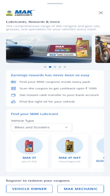 मक लुब्रिकेंट्स (MAK lubricants) के अंदर उपलब्ध कूपन को स्कैन करके तुरंत ₹1000 तक का कैशबैक सीधे अपने बैंक खाते में पाएं और अपनी गाड़ी के लिए सही तेल चुनें। मक मैकेनिकों के लिए भी विशेष वफादारी कार्यक्रम उपलब्ध हैं, जो उन्हें तत्काल नकद लाभ और पुरस्कार प्रदान करते हैं। हेलो बीपीसीएल (Hello BPCL) सिर्फ व्यक्तिगत उपयोग के लिए नहीं, बल्कि आपके व्यावसायिक आवश्यकताओं को भी बखूबी पूरा करता है। चाहे छोटे उद्यम हों या बड़े कॉरपोरेट, यह ऐप भारत पेट्रोलियम (Bharat Petroleum) के ऊर्जा समाधानों की एक विस्तृत श्रृंखला प्रदान करता है, जो आपके संचालन को सुचारु और कुशल बनाता है।