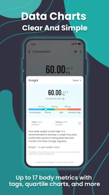 यह ऐप ब्लूटूथ तकनीक का उपयोग करके आपके इलेक्ट्रॉनिक स्केल से आपके स्वास्थ्य संबंधी डेटा जैसे वजन, BMI और अन्य महत्वपूर्ण मापदंडों को स्वचालित रूप से प्राप्त करता है। प्राप्त होते ही, यह डेटा सुरक्षित रूप से सहेज लिया जाता है, जिससे आपको मैन्युअल एंट्री की परेशानी से मुक्ति मिलती है। इतना ही नहीं, यह आपके डेटा का विश्लेषण कर स्वचालित रूप से स्वास्थ्य मानकों का आकलन करता है, यह बताता है कि आपके आंकड़े सामान्य सीमा में हैं या नहीं, और समय के साथ आपकी प्रगति को दर्शाने वाले स्पष्ट ग्राफ़ भी तैयार करता है।