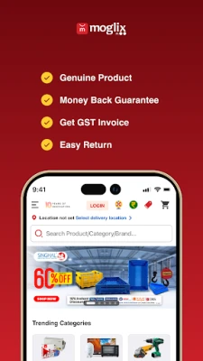 Moglix - बी2बी और बी2सी शॉपिंग ऐप औद्योगिक, व्यावसायिक और व्यक्तिगत खरीदारियों के लिए एक प्रमुख ऑनलाइन मंच है। यहाँ सुरक्षा उपकरण, पावर टूल्स, इलेक्ट्रिकल, प्लंबिंग, किचन और अन्य उत्पादों की एक विशाल श्रृंखला उपलब्ध है। परेशानी-मुक्त अनुभव का आनंद लें।